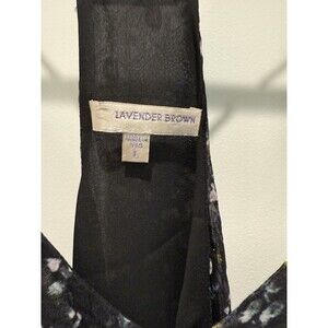 Lavender Brown Black Floral 100% Silk Flowy Skinny Strap Mini Dress Large L