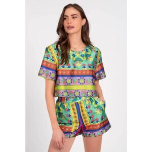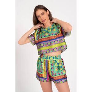 Lavender Brown Helen Silky Pull-on Shorts in Green Multi BMS6457P Medium M NEW