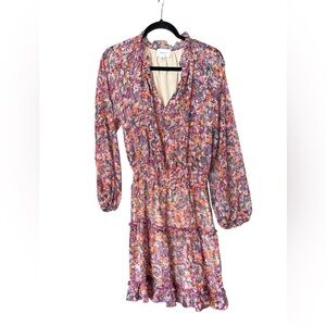 Lavender Brown Long Sleeve Ruffle Tiered Mini Sheer Sleeves Floral Size XS - Perfect Condition MSRP $204