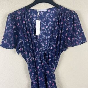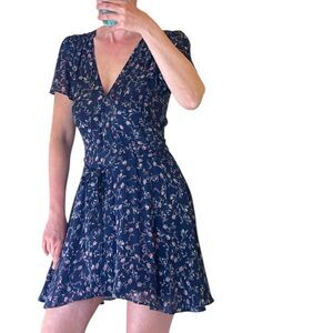 Lavender Brown Silk Floral Mini Wrap Dress blue size Small