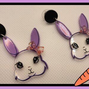 Lavender Bunny Earrings Glitter Bow Purple Rabbit Acrylic