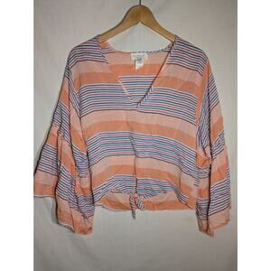 Lavender Fields Top Womens Medium Boho Long Bell Sleeves Orange Striped slight crop Top is in good condition.