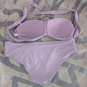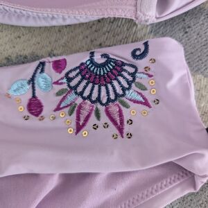 Stylish lavender bikini set with floral embroidery and sequins. Perfect for beach days. Size Medium