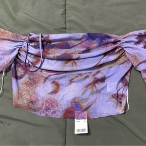 Sheer/mesh purple floral off the shoulder cropped top. Long sleeves with ruching and adjustable straps. Super cute gives festival vibes. Brand new