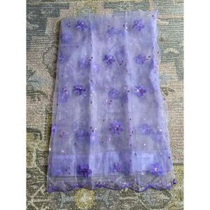 Lavender Floral Sequin Scalloped edge Sheer Curtain Panel Size is 40x60” New