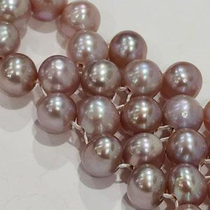 Lavender Freshwater Pearl Multi Strand Choker Necklace 925 Sterling Silver Clasp