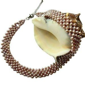 Lavender Freshwater Pearl Multi Strand Choker Necklace 925 Sterling Silver Clasp
