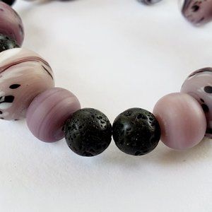 Lavender Glass Lampworkl Bracelet w/ Lava Beads