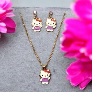 Lavender Hello Kitty Earrings And Necklace Set