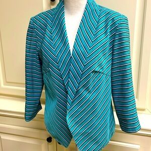 Lavender & Honey Striped Open Front Blazer Asymmetrical Jacket Teal Green Blue