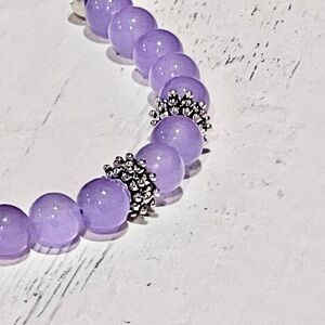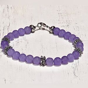NEW - Chic dyed lavender jade handmade beaded anklet adorned with silver daisy accents. The rhinestone beads and silver lobster clasp pulls it all together by adding a touch of elegance to any ensemble.