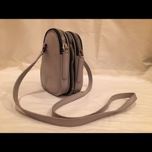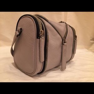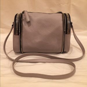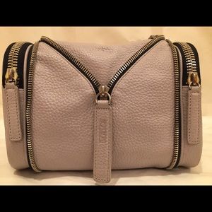 Crafted of lavender grained leather, KARA's Double Date bag is detailed around its body with a silver zipper that converts the roomy duffel into a compact two-pocket purse. // Zip side pockets and black cotton interior. // This bag is in beautiful condition (looks brand new), with unnoticeable minor scuffs on bottom corners and unnoticeable slight discoloration on two zippers. // It's a lovely lavender color that is extremely rare to find in this style for this designer. // 8" w x 6.5" h x 5" d
