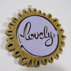 Lavendar Purple Round Center with Laser cut out “lovely” in cursive (glitter paint)