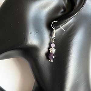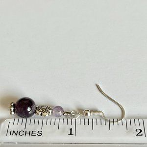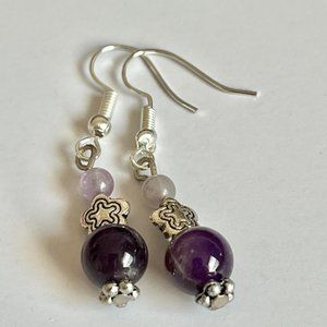 Lavender Purple Amethyst Bead Earrings Silver Plated Flower Dangle Semiprecious