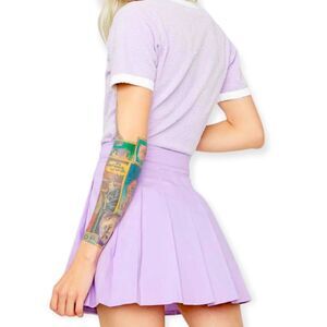 Fashionable flirty mini pleated mini skirt!  Pastel core lilac purple high waist pleated mini skirt.
