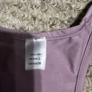 Stay comfortable and stylish with this lavender racerback tank top. Perfect for workouts or casual wear.