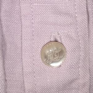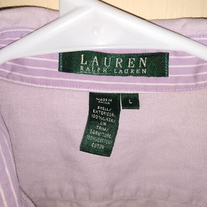 Has Ralph Lauren logo buttons, logo embroidered on the left chest, and a pretty striped collar 💜