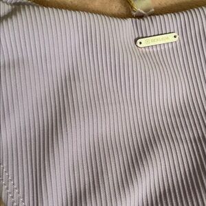 Stylish lavender ribbed bikini set. Includes a twisted top and matching bottoms. Perfect for a chic beach look. Great for resort, pool, vacation, cruise.