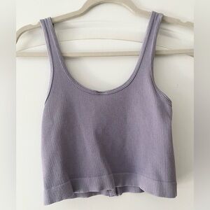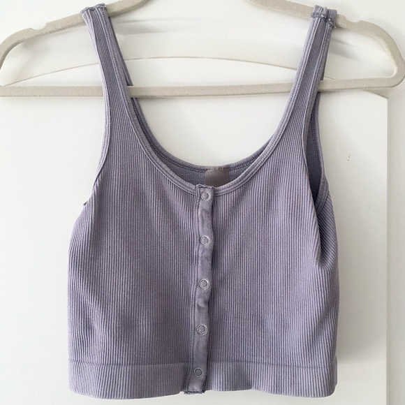 Stylish lavender ribbed tank top with button-up front. Perfect for casual wear.