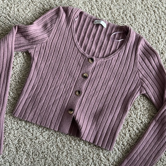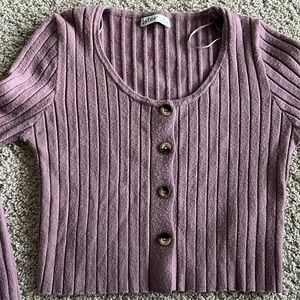 Lavender Ribbed Button-Up Sweater