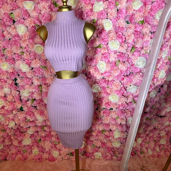Elevate your style with this chic lavender ribbed knit skirt set. Perfect for any occasion, this set offers both comfort and elegance.