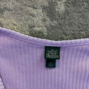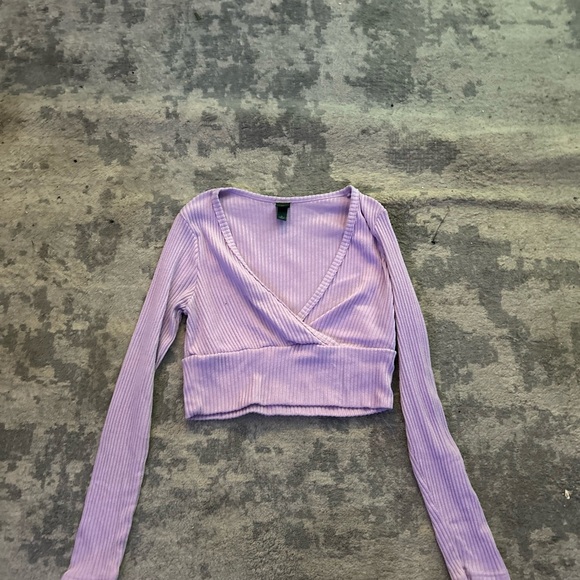 Elevate your style with this chic lavender ribbed wrap top. Perfect for any occasion, this top offers both comfort and elegance.