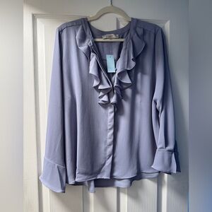 Elegant lavender blouse with ruffle detailing. Perfect for a chic and sophisticated look.