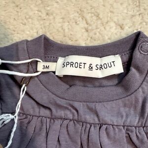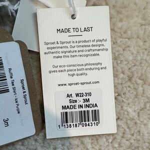 long-sleeve tee in soft lavender with a charming chest ruffle. Lightweight and breathable for everyday wear. Elastic cuffs for a comfortable fit. Easy pull-on style for quick dressing.
