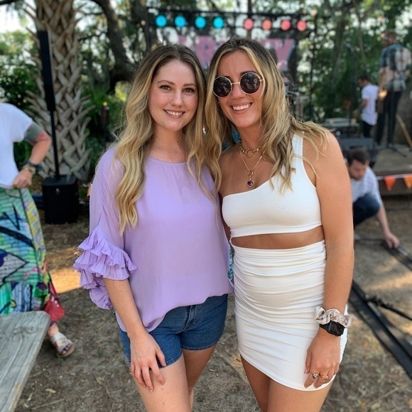 Lavender Ruffle Shirt Flowy. Size medium Semi sheer. EUC.