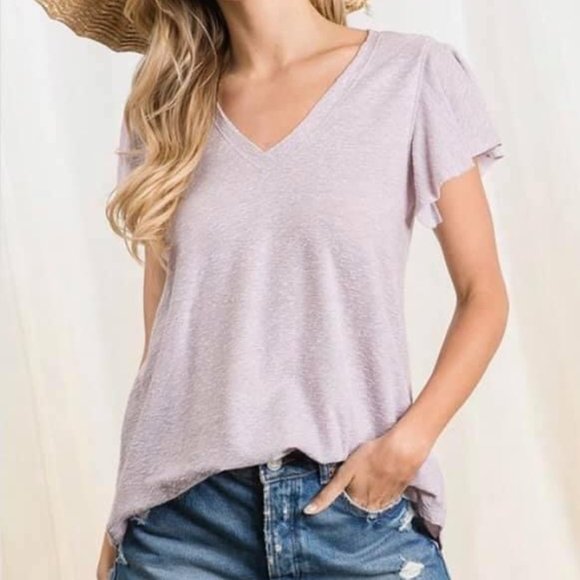 Lavender Ruffle Sleeve Top
