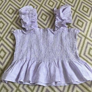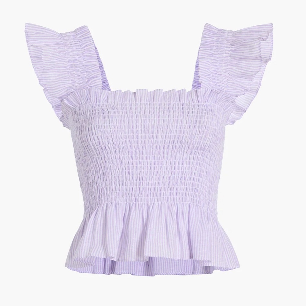 Elevate your style with this charming lavender ruffle smocked top. Perfect for any occasion, this top offers a flattering fit and feminine flair.