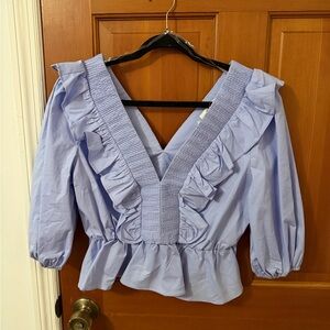 Lavender Ruffle V-Neck Blouse