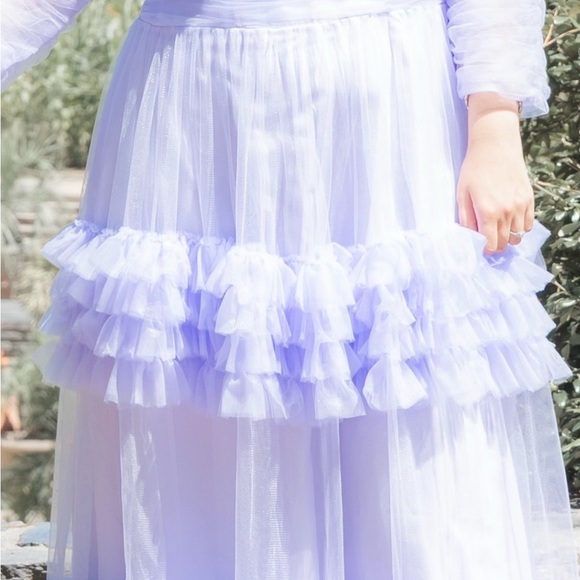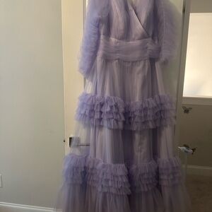Elegant lavender dress with ruffled details. Perfect for special occasions.length59” and width 34”