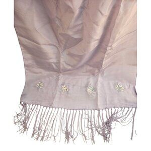 Lavender Scarf Embroidered Floral Rhinestone Fringed 76x21 inches Silk Rayon Pre