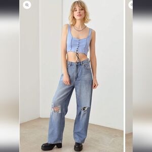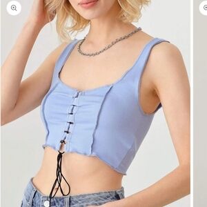 Lavender Solid Lace Up Sleeveless Round Neckline Crop Top