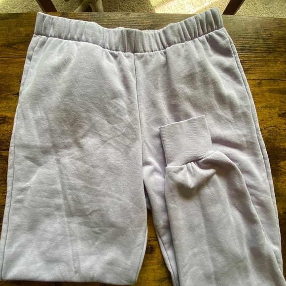 Divided comfy pastel lavender sweats. Size medium fits medium/large. No tears, no stains and nearly new.