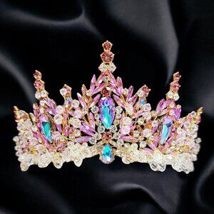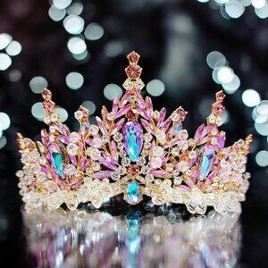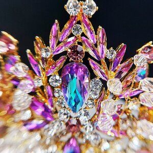 The Lavender Tiara, Victorian Tiara, Purple Crystal Crown, and Princess Gold Tiara are all stunning handmade pieces designed for special occasions such as birthdays, proms, pageants, parties, weddings, and even cosplay events. Made with gold, crystal, rhinestones, and beads, these elegant tiaras are perfect for adding a touch of glamour and royalty to any outfit. The tiaras are crafted in the United States, making them a unique and luxurious addition to any formal occasion or event.