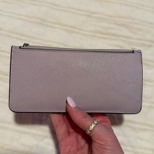 This stylish lavender wallet is perfect for any occasion. Its sleek design and subtle color make it a versatile accessory for your wardrobe.
