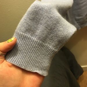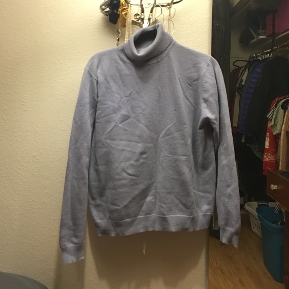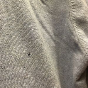Kirkland signature 100% cashmere sweater. So warm and perfect for winter! There is a small hole on the front shown in the picture. Fits like a large!