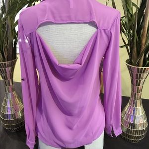 This is a lavender double cross studded blouse with a peek-a-boo back, polyester fabric, very cute. Never worn.