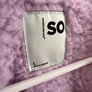 Comfy lavender faux fur jacket size L can fit XL. Perfect over ripped jeans & a white tank top or Pima cotton T, or black T and pencil pants! Do it your way!. Washable. Worn once so like new!