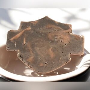 Unique Harley-Davidson logo soap in gray and white. Perfect for motorcycle enthusiasts.