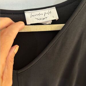 Lavender Field Black V-Neck Knot Front Women's Top sz L