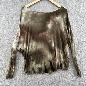 This is a boho casual tie dye deep green knot front dolman sleeve v-neck blouse by the brand Lavender field