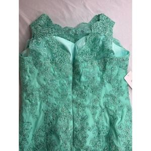 Lavetir Gown Dress Women's 18 Plus Green Floral Maxi Jewel Neck Sleeveless New