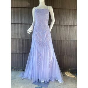🔥Lavetir Lilac Romantic Lace Embroider Backless Mesh Mermaid Formal Party Dress