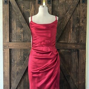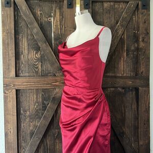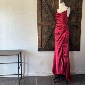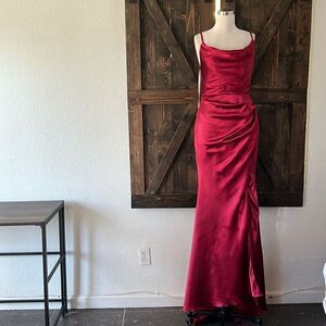 Lavetir Satin COWL NECK RED GOWN FRONT Split back lace up gown dress