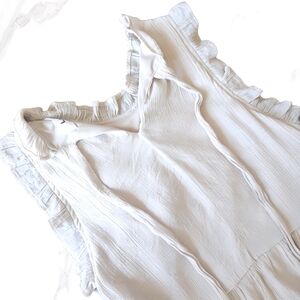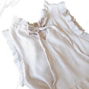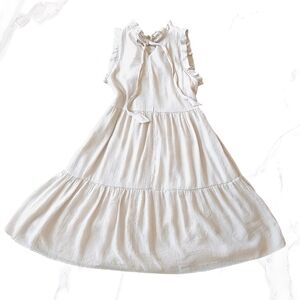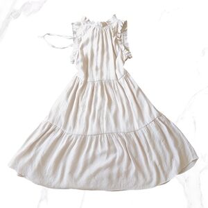 Lavila Cream Ruffle Sleeve Tiered Midi Dress Tie Neck Lightweight Boho M