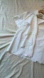 Elegant white blouse with ruffled front and short sleeves.