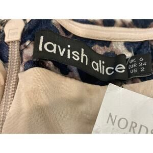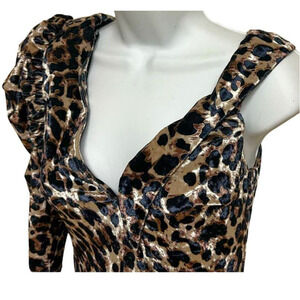 Lavish Alice Asymmetrical Cold Shoulder Velvet Cocktail Dress Sz 2 Leopard NWT